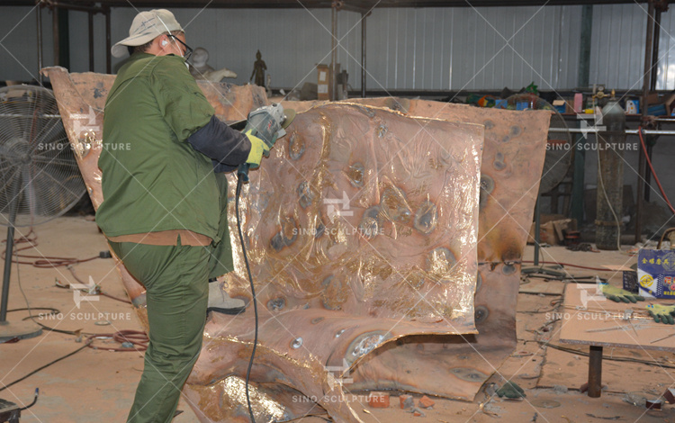 For small sculptures, we can cast them all at one time, which is simpler. However, large-scale bronze sculptures, need to be divided into small pieces for block casting. Welding each single cast copper plate after casting to form a complete large-scale copper sculpture.