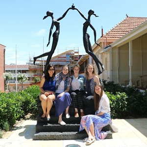 Two girls stood on a sofa, and their right hands held a pomegranate. This sculpture was cast in bronze with a black patina. The sculpture was made for a girl's school in Perth, Australia in 2015.