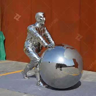 Stainless Steel Sculpture Casting Mirrored Figure and Globe