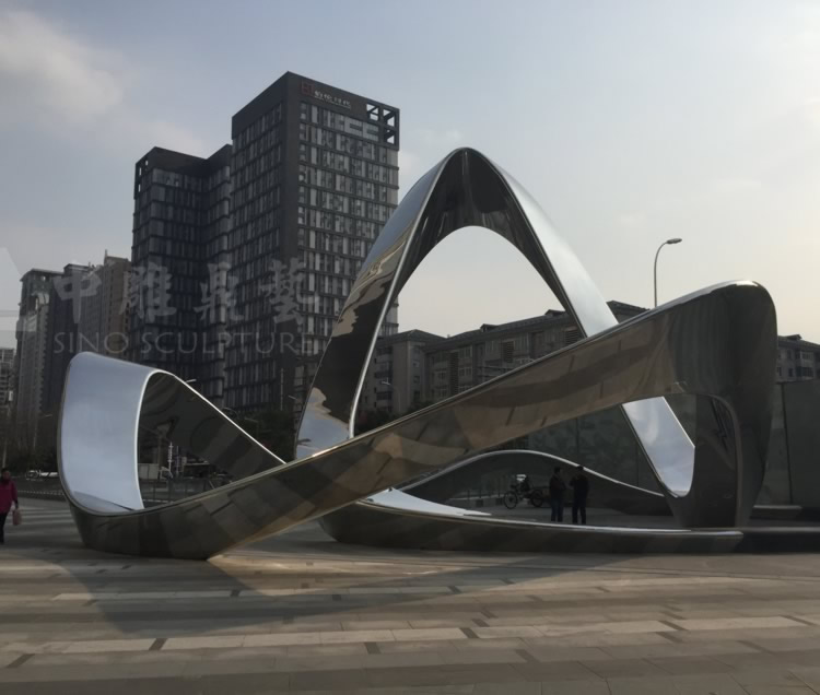 This was designed by Germany for a Chinese real estate company in Shenyang City. It was an abstract urban steel sculpture by mirror-finished stainless steel sculpture.