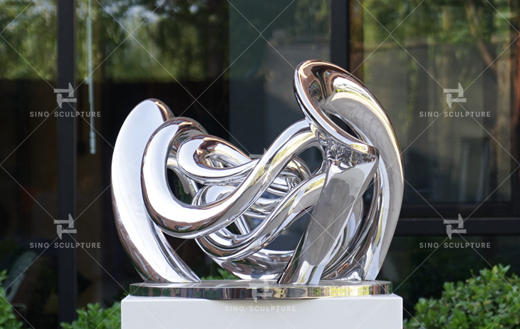 This curved stainless steel statue with high mirror effect is a good example. It looks like a blooming flower from a distance. The smooth curve design expresses the natural law of flowers blooming layer by layer. Combined together, this mirror stainless steel abstract statue is vividly associated with flowers.