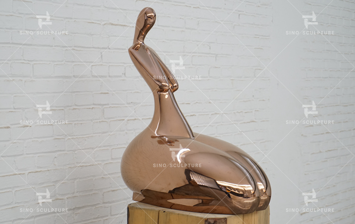 After the mirror-polished stainless steel sculpture, if you want it to have some rose golden color, golden color, yellow, etc, the electroplate is one of the best ways to achieve it. This sculpture was made in stainless steel with a mirroring rose golden color, the sculpture looks more beautiful and colorful when electroplating.