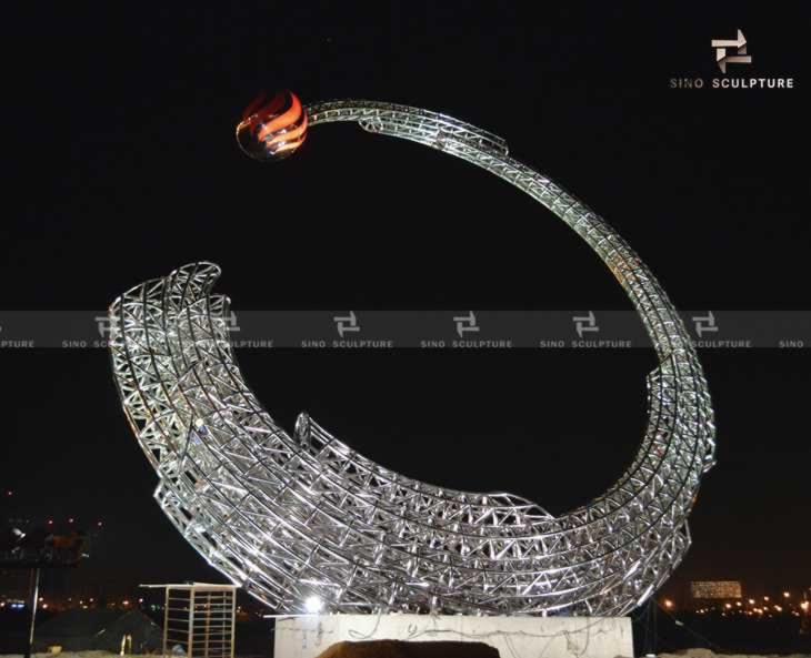 The large-scale sculpture is called Pearl of the North Bank. It was completed in 2013, based on the theme of the high-tech zone's landmark area and development planning. Through the creative design of modernity and technology, it reflects the rapid development and development vision of the high-tech zone.