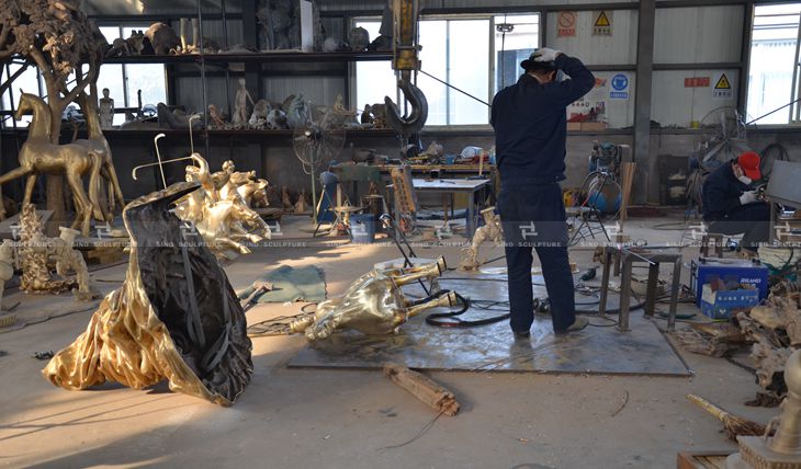 Casting brass sculpture and welding at Sino Sculpture workshop Beijing