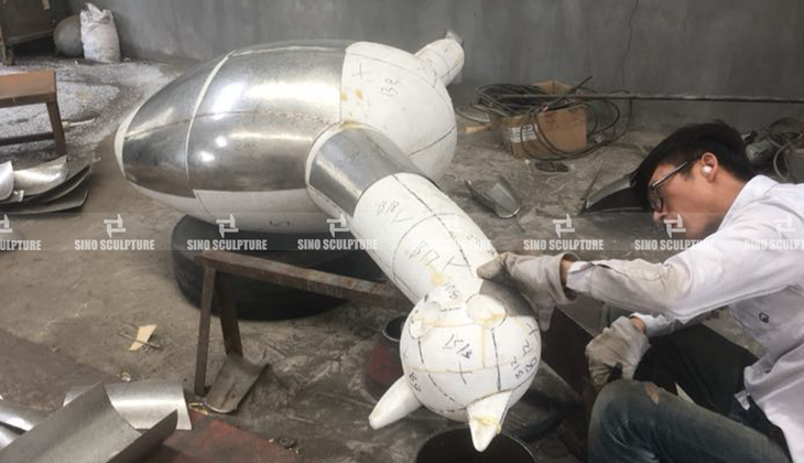 The giraffe is an animal that is always popular with children. The first is that it is relatively rare, because it is not often seen in daily life, and the second is that it has a long neck, which arouses the curiosity of children from time to time. The last point is that whether it is from the screen or in the book, the giraffe is always an amiable image and accompanies the children to play. And now the Artist designed a Giraffe sculpture and installed it in a Kindergarten in Norway, but the painted stainless steel animal statue looks more cartoonish and cute than the real giraffe. The whole stainless steel sculpture is 2.4m(7.87ft) high, which surface panel made by stainless steel plate 316L and interior structure adopted stainless steel 304 that is more corrosion resistant compared to carbon steel. We sprayed the surface of this stainless steel animal sculpture with matte orange color paint, meanwhile with some claybank spot on the body part. It total takes two months to finish the fabrication work and transport it to the site as a whole. That is the cute painted stainless steel animal statue, more used for an outdoor public art exhibition. And as a work of metal art, spray-painted animal sculptures always look more vivid and colorful.
